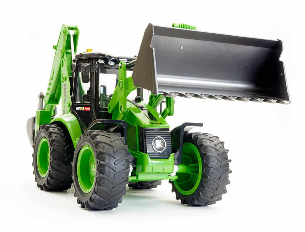 Huina’s Backhoe Loader is the latest addition to their wide range of radio controlled scale construction vehicles. The full-size variants are used for digging, trenching, back-filling and handling material and used widely around the world in construction and agriculture. This 1:14th scale 9-channel full function loader features a multi-direction diecast front bucket, controlled from the transmitter, realistic working sounds, demo mode, LED light, forwards, backwards, left and right control.