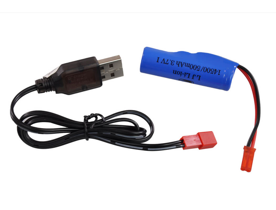 - Battery: Li-Ion 1S 3.7V 500mAh, JST/BEC connector, 49x16x16mm, 18g