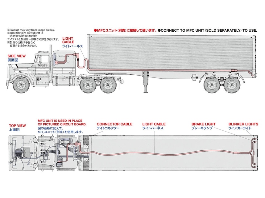 The Semi-Trailer Light Set when combined with the Tractor Truck Electrical Unit Set or Multi-Function unit, allows the modeler to further enhance appearance and performance with functional blinkers and brake lights. The unit can be easily installed on the semi-trailer without any complicated wire connecting chores. Power is supplied by the trucks running battery. The set includes semi-trailer connector cable with light bulbs and internal circuitry board connector cable. Includes easy to understand instructions.