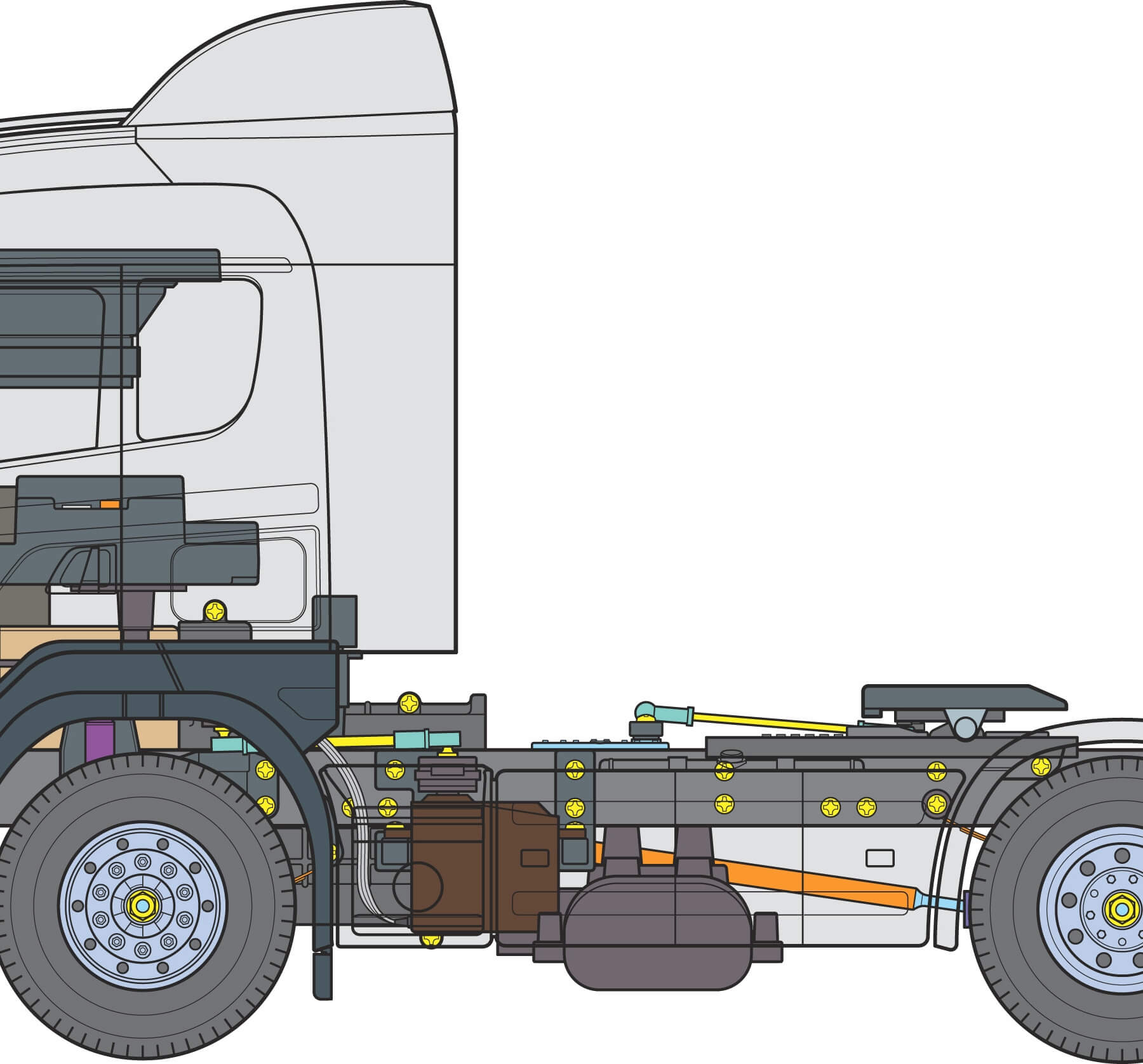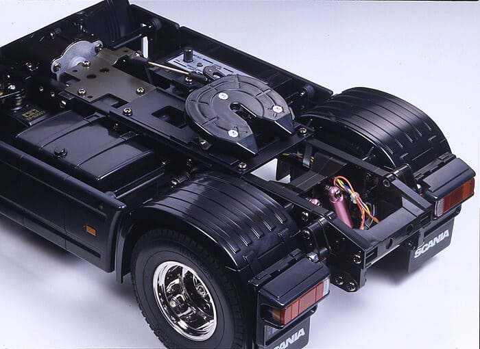 Tamiya proudly presents the R470 Highline, one of the trucks belonging to Swedish manufacturer Scania’s International Truck of the Year 2005 award-winning R Series. Body features replica-quality realism and the chassis features numerous metal parts for the frame and suspension for an added sense of volume. Assembly of the 3-speed transmission is effortless, and when used with a 4-channel transmitter, it will give fans full control of realistic gear shift operations. Beautifully reproduced cabin tilts forward separately from the fenders, just like the actual truck. The interior and exterior of the fenders themselves have also been accurately modelled for the most realistic look possible. Kit-included coupler enables linkage with any of Tamiya’s currently available 1/14 scale trailers, and the R470 is compatible with a wide range of Tractor Truck Option Parts as well.