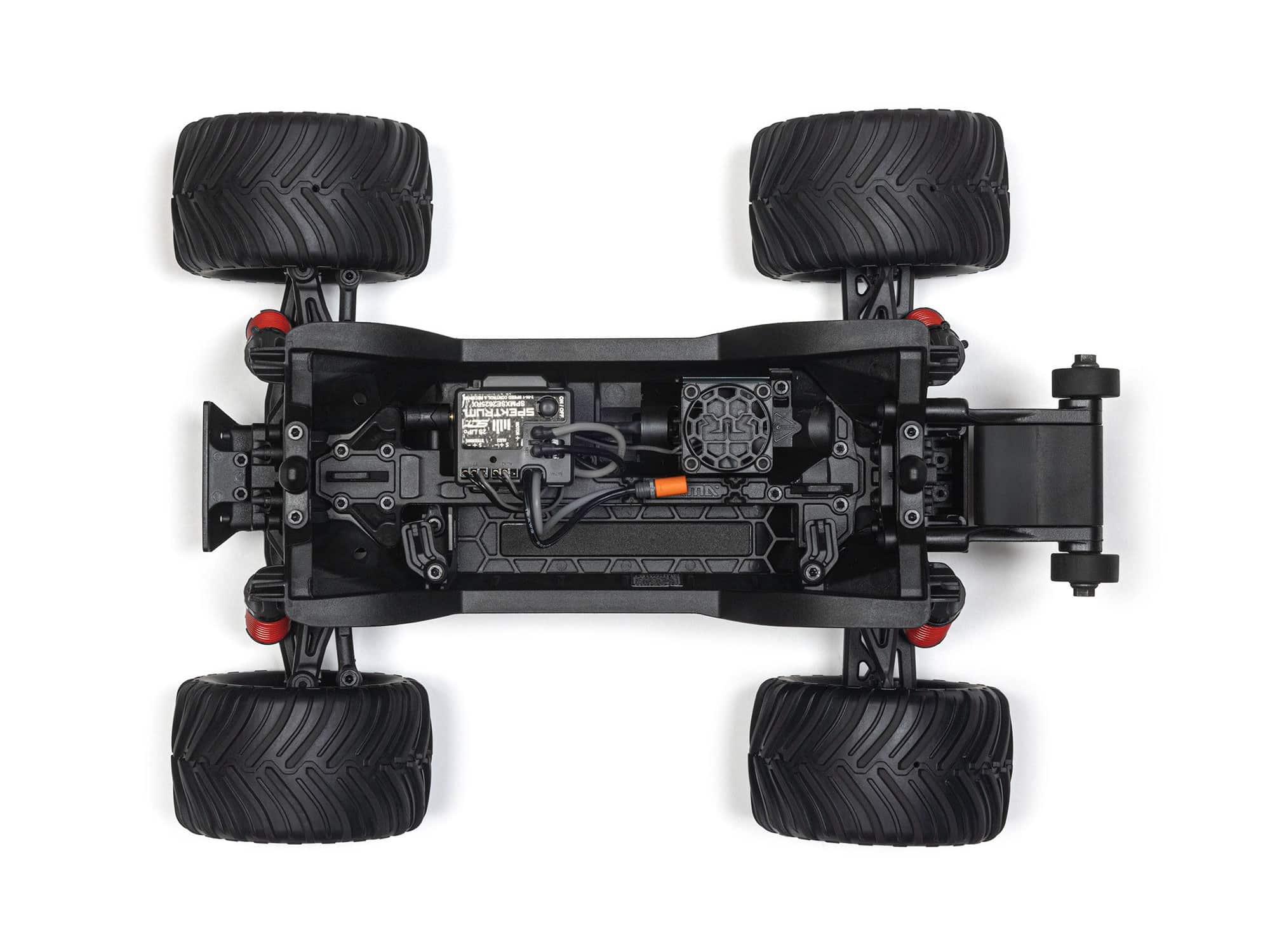 The enclosed drivetrain with rugged metal gears carries power from the installed Spektrum 380-Size Brushed Motor to all four wheels for high traction. The entyre power system is well-protected for dependable performance on all terrain.