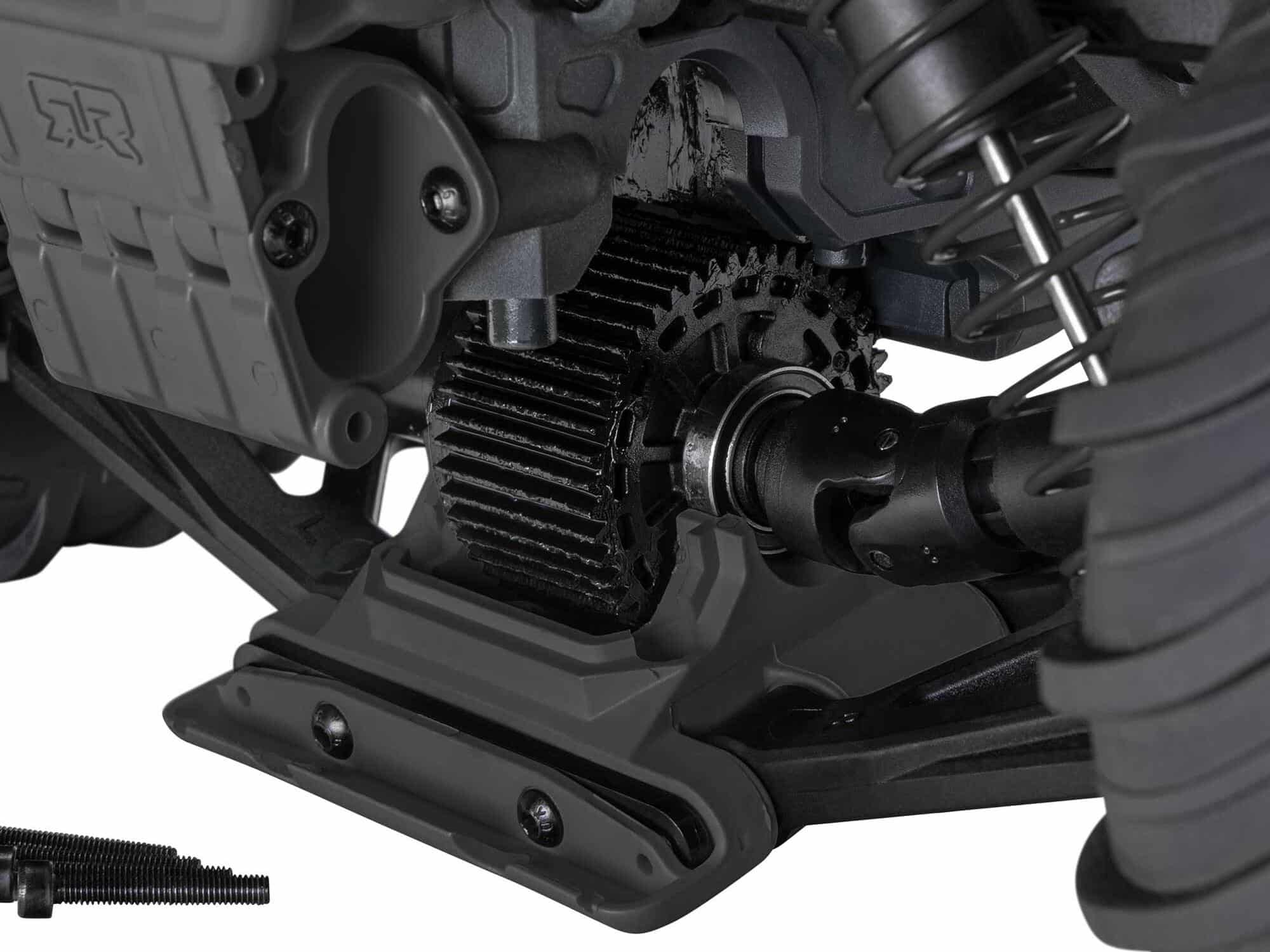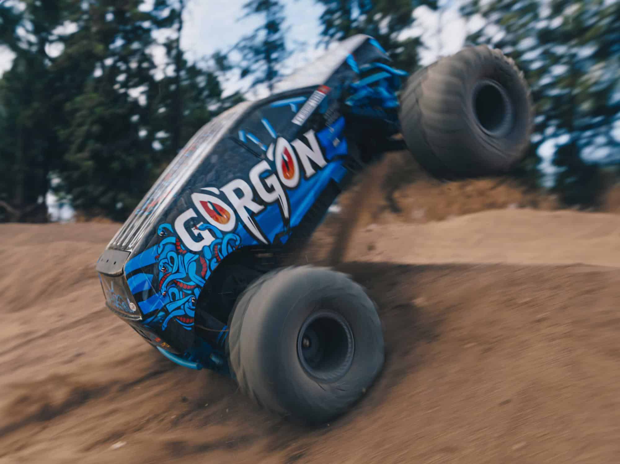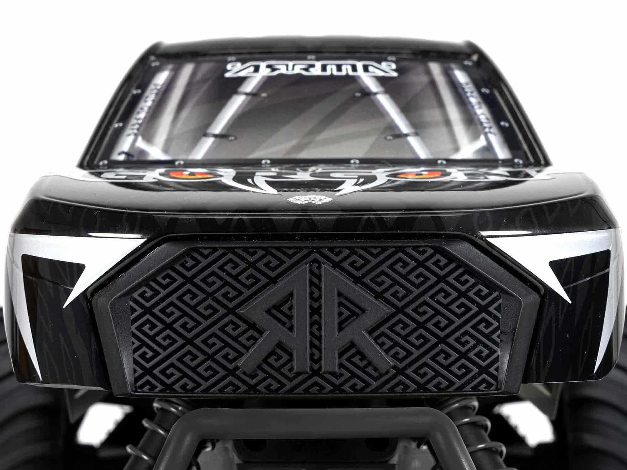 When you’re blasting with the ARRMA GORGON MT monster truck, all eyes will be on you — and on its “fang-tastic”, factory-finished trim scheme. The GORGON MT RTA Kit is available in gunmetal colour, with colour-coordinated shock springs, battery tray, skid plates, and front and rear bumpers. A quick-release mechanism lets you get under the body in seconds for super-easy maintenance.