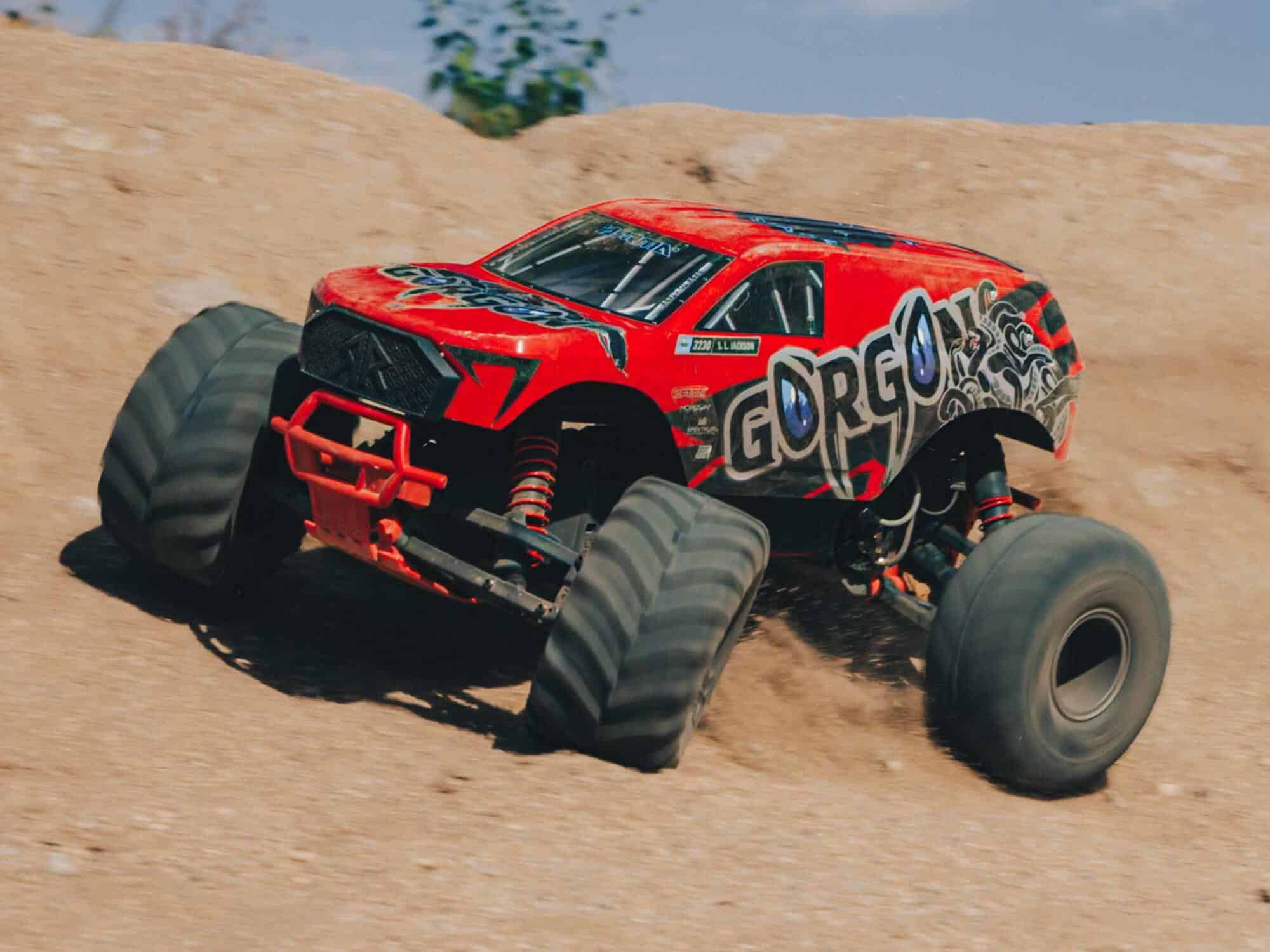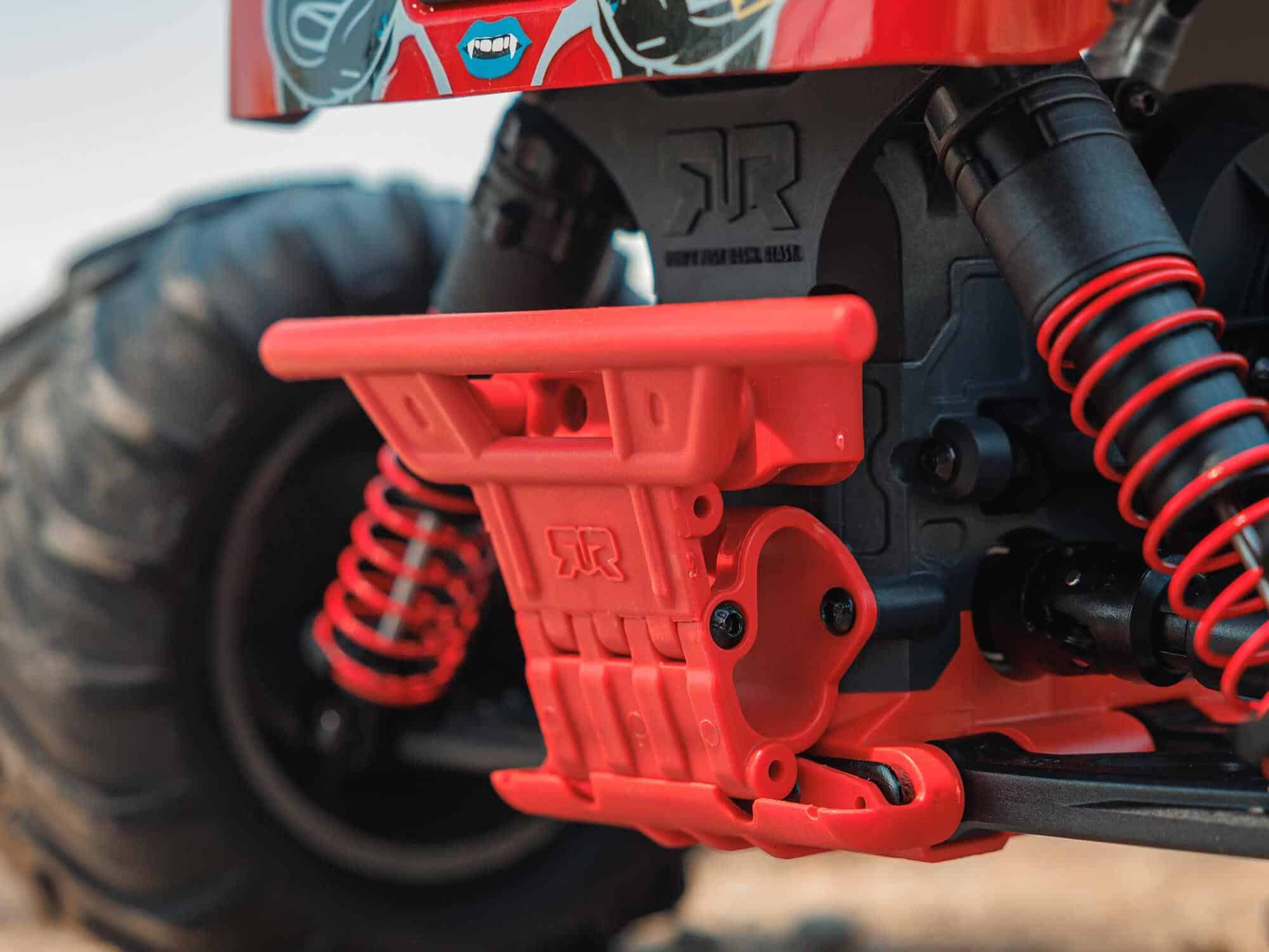 When you’re blasting with the ARRMA GORGON MT monster truck, all eyes will be on you — and on its “fang-tastic”, factory-finished trim scheme. The GORGON MT RTR is available in red or fluorescent yellow, with colour-coordinated shock springs, battery tray, skid plates, and front and rear bumpers. A quick-release mechanism lets you get under the body in seconds for super-easy maintenance.
