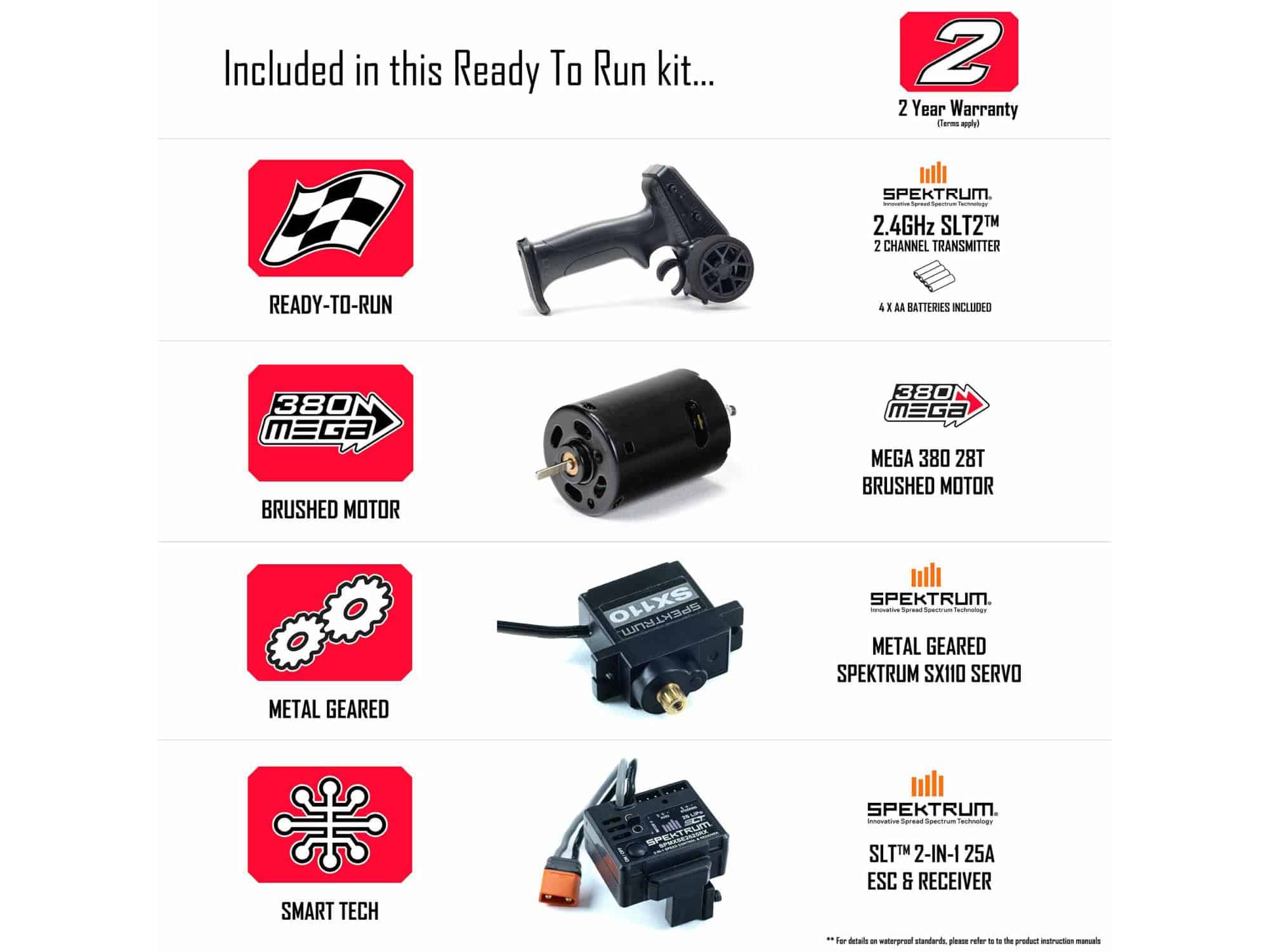 - Spektrum SLT 2-in-1 25A waterproof ESC and receiver