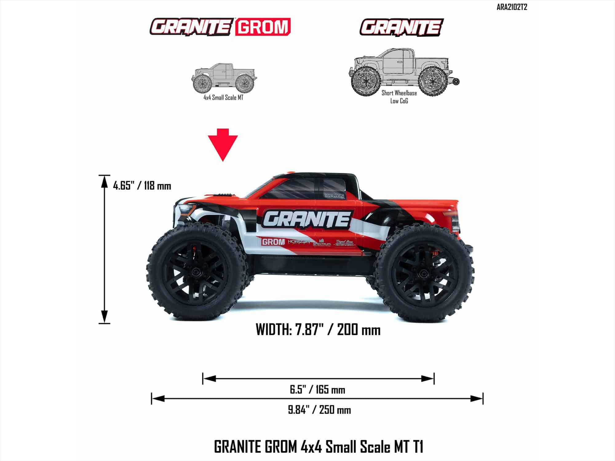 The ARRMA GRANITE GROM 4X4 Monster Truck RTR is engineered and manufactured to the same high standards of durability and performance that you expect from any ARRMA vehicle. It’s just smaller!