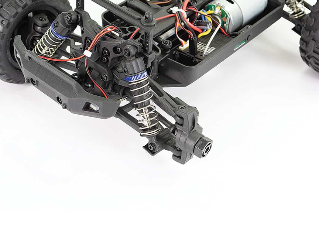 Powered by a 390 sized brushed motor and micro 7.4 800mAh 2S Li-Ion battery, the Tracer is fast and nimble….perfect for bashing, jumping and more! For those that are new to r/c cars we have included a speed switch to help dial the speed of the Tracer and make it more manageable for new drivers.