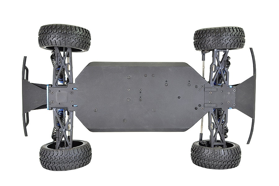 Using an all new heavy duty moulded chassis platform, the Zorro BL uses a 3 geared-diff drivetrain as used on larger 1/8th models to deliver the drive, resulting in more evenly distribututed power and a more drivable truck.