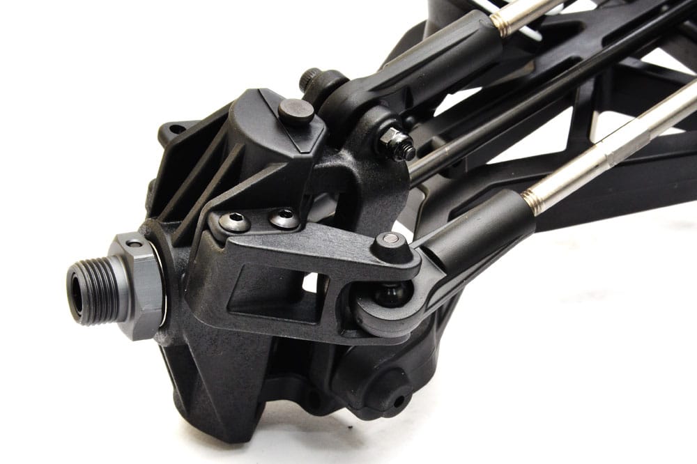 - Symmetrical front and rear suspension arms, carriers and steering knuckles