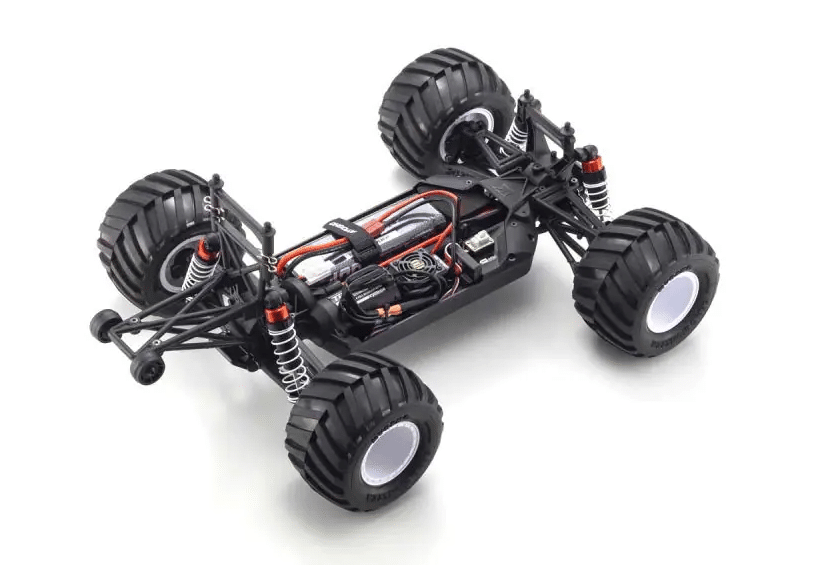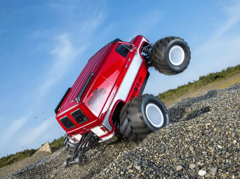 VE model features a wheelie bar to prevent flipping over when doing wheelies. With the power of the brushless motor, the dynamic acceleration lifts the front wheels and the chassis runs on its rear wheels (wheelie).
