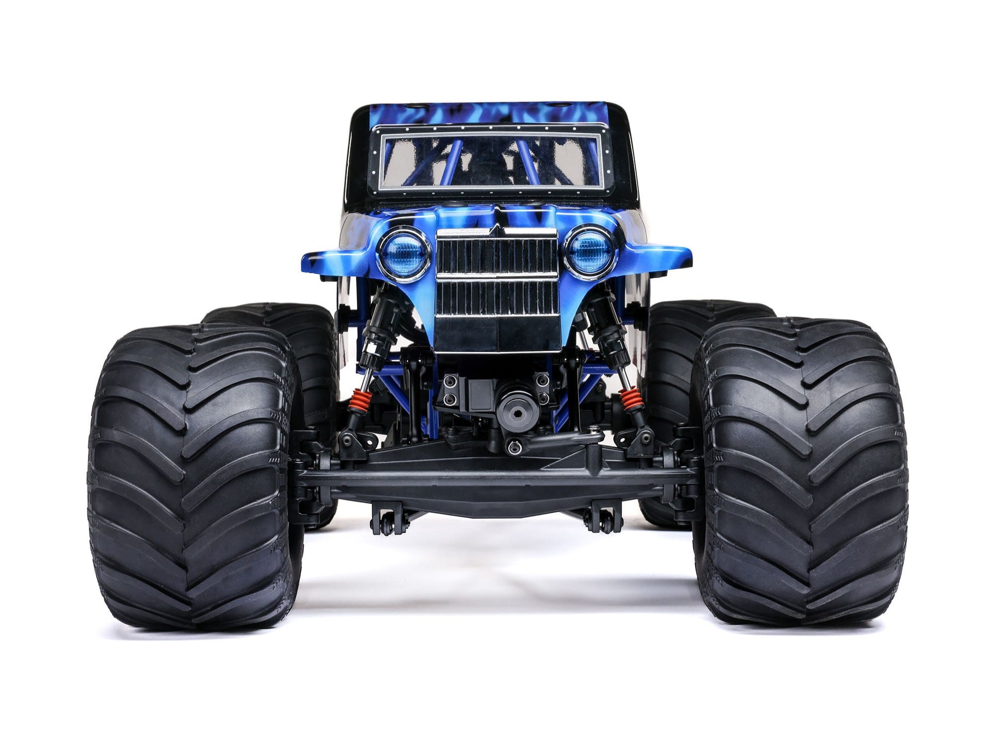 Losi sets a new gold standard for solid axle monster trucks with the LMT 2.0! Its Freestyle Mode – made possible by Spektrum DRIVE Technology – lets you hold wheelies, do stoppies, and even bicycle on two wheels, just like full-size Monster Jamâ„¢ trucks!