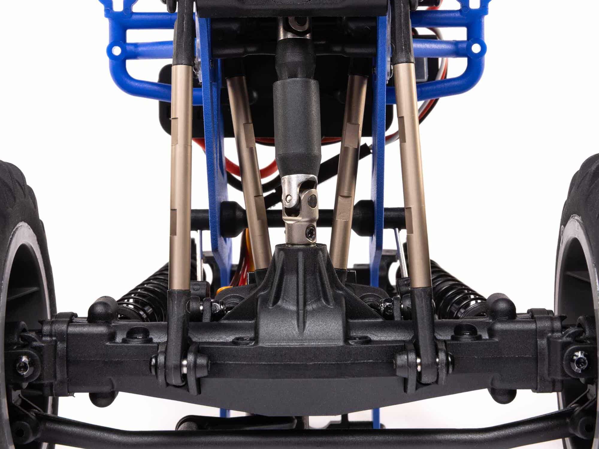 Anyone who loves working on full-scale cars and trucks will enjoy maintaining and upgrading the Losi Mini LMT 4WD, just as they would a real vehicle. For example, these durable metal yokes allow the driveline to be serviced and repaired easily whenever necessary. Links made from durable aluminium hang tough through hard-hitting monster truck action. They’re easy to maintain and allow easy rod end replacement.
