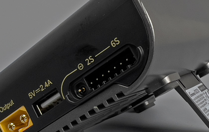 Located between the XT60 output and G-Tech balance port is the USB-A port that is for updating the charger with the included lead from time to time. As it is powered it can also charge your phone and power small USB appliances such as pit lights.