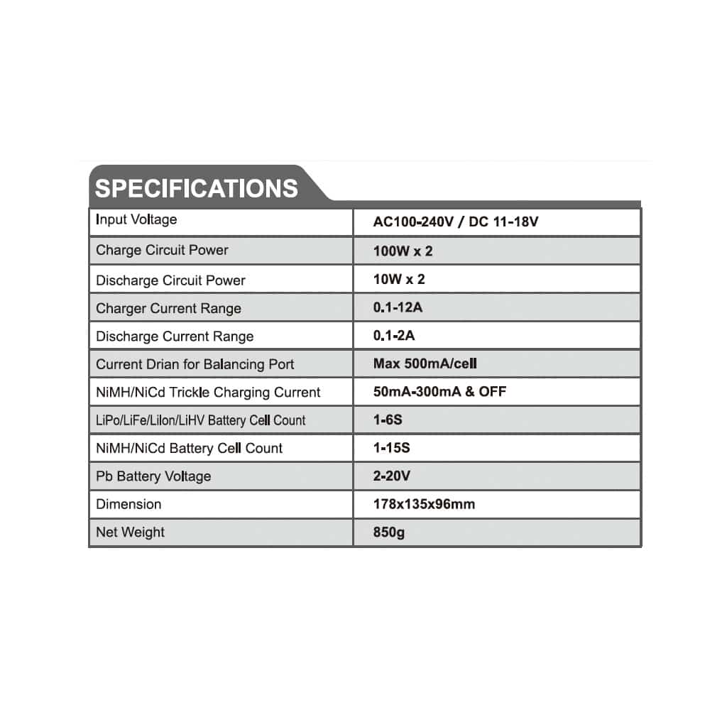 Highlights of this great charger include, dual output, AC/DC and up to 12A of charging power!