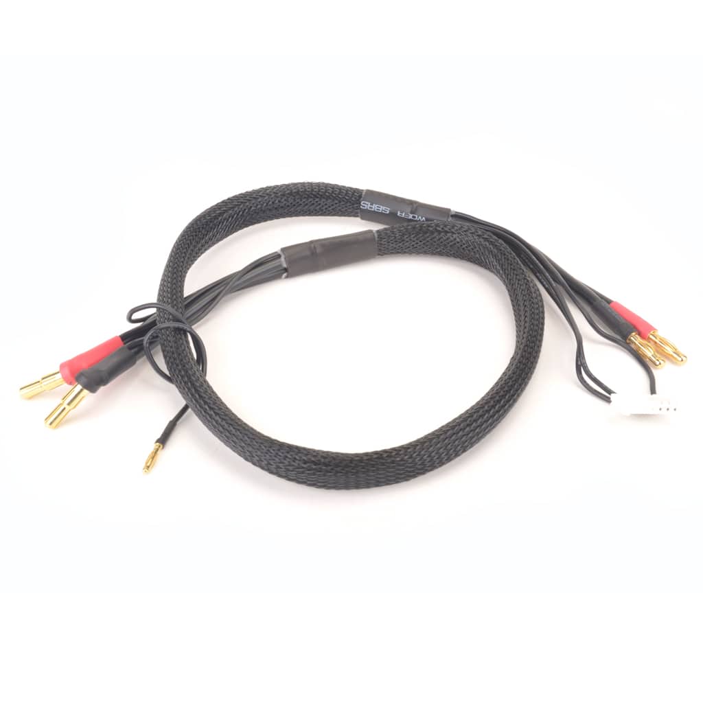 2S Lipo charge lead with 4mm charger input plugs and 4-5mm battery plugs, including 2mm balance plug.