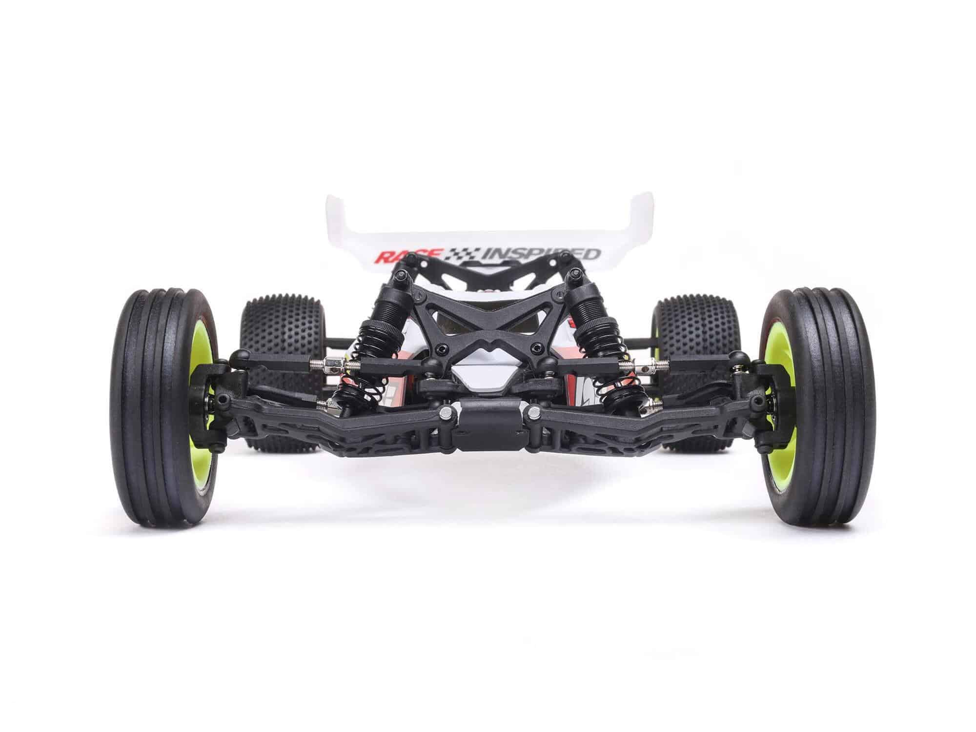Straight out of the box, the Mini-B brushless is completely assembled and ready-to-run with everything you’ll need to hit the track. Though mini in size, the Mini-B offers the performance capabilities of larger RC racing buggies. Its efficient 2-in-1 brushless motor and ESC system can send it at 30 mph speeds on the back straight, complementing its predictable handling with the power to dive into a corner to make a pass and hit the jumps consistently. The Mini-B offers the durability to withstand crash impacts with other competitors. And with a suspension inspired by the prestigious TLR 22 — a vehicle often seen on the podium at the most competitive 1/10 scale buggy races — the Mini-B handles like a high-end machine, agile in the corners and easy to jump.