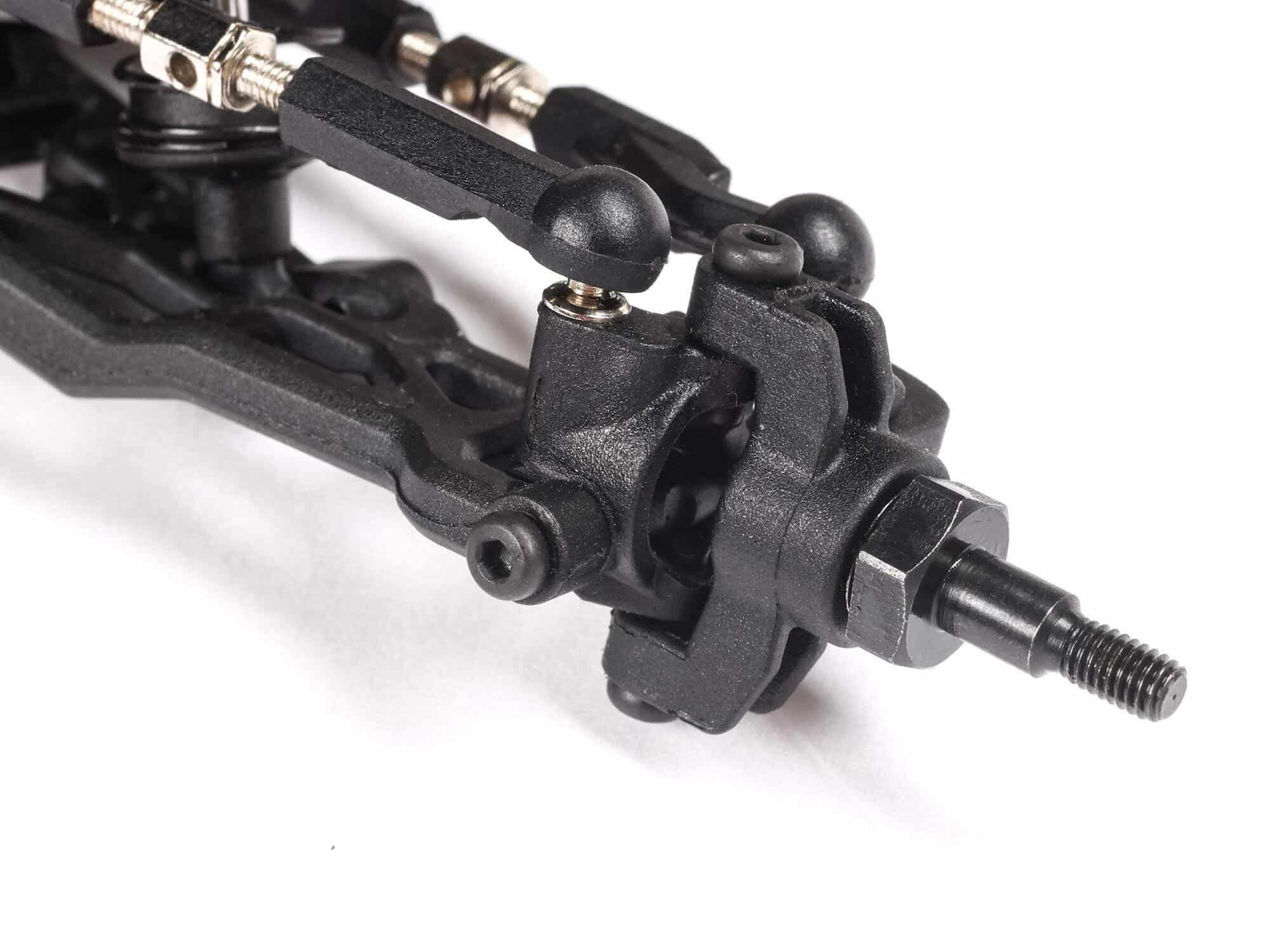 Small improvements make a big difference at the track! After studying the Mini-B and listening to racers, Losi engineers found many ways to refine its design. The shock cup height has been adjusted to keep the spring secure. A bearing spacer added in the rear hub lets you tighten the rear wheel with confidence. A new ball cup material provides better function and durability. The transmission case accepts sway bars, and the front bulkhead has been thickened to increase strength. The new slipper plate offers a more consistent feel under brushless power, and the servo saver increases consistency while making the steering feel more direct.