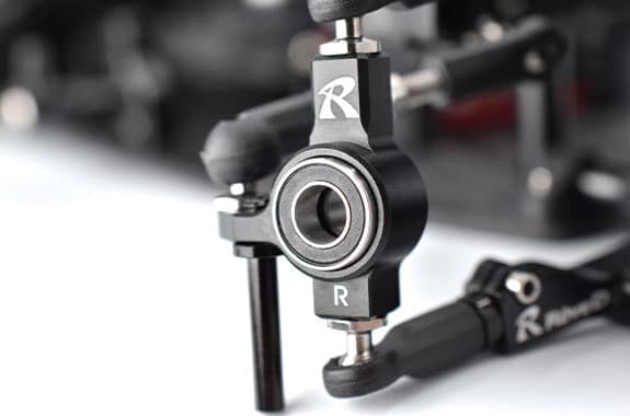 The white ceramic balls are as large as possible in diameter, and are highly durable and wear-resistant. The lightweight ceramic balls reduce rolling resistance, and the grease-less design eliminates grease, minimizing rotational loss in the front axle, which is important in RWD drifting, and achieving smooth rotation of the front tire.