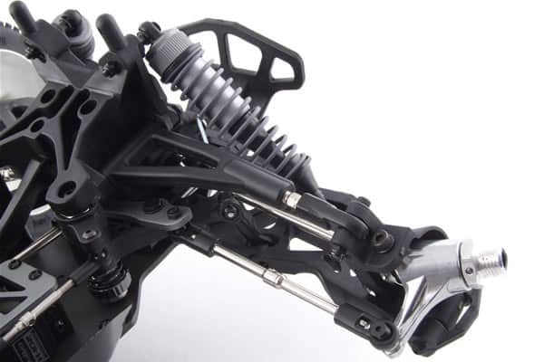 This ST is based on the 1/8th rallycross buggyplatform, specifically the competition winning HoBao Hyper buggy range. Looking at it you can see a combination of both the Hyper 7 and 8 parts in there, as well as some brand new touches designed specifically for the truggy racing scene.