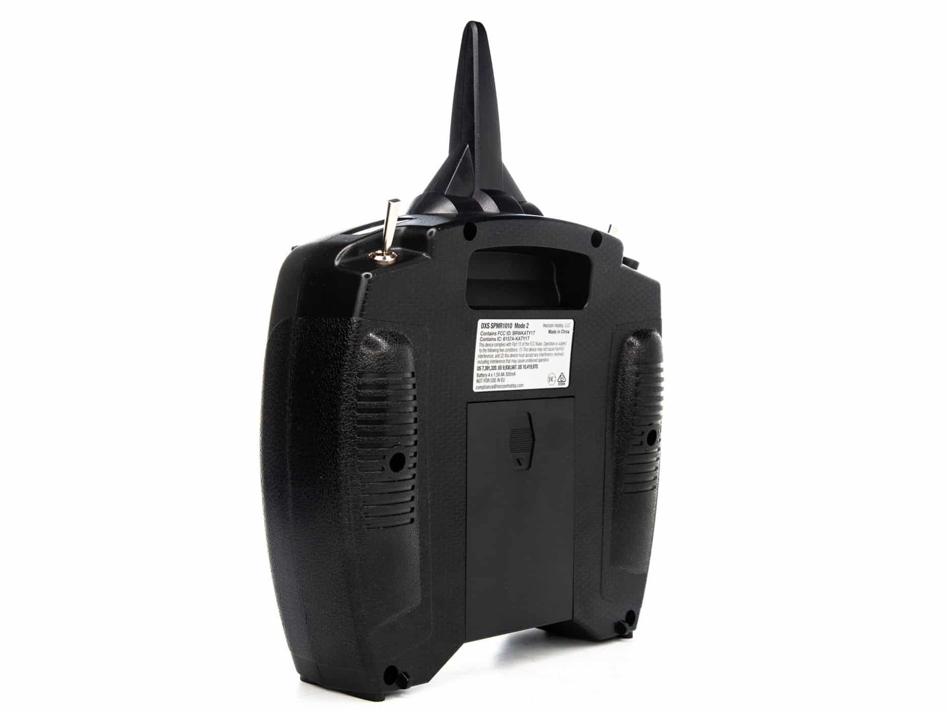 Weight distribution, switch placement and trim switch positions have been optimized for comfort and fatigue-free control. An integrated handle and neck strap hook are included for easy carrying. Ports are provided in the rear battery compartment for using optional wireless trainer and data port. The SRXL2™ DSMX® Remote Receiver (available separately) is required for wireless trainer support. Registration and firmware updating are possible from your PC by downloading the software from the DXS product page at SpektrumRC.com and using the USB Programming Cable (available separately).