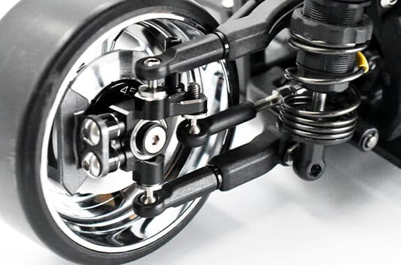 By changing the screw size of the turnbuckle from M3 to M2.5, the external shape of the plastic ball cap is slimmed down (approximately Φ4.2mm), avoiding interference with the knuckles and tires and significantly increasing the turning angle. The turnbuckle is made of lightweight, high-rigidity titanium and comes in three sizes: 28mm, 32mm, and 36mm, so you can choose the one that best suits your machine.