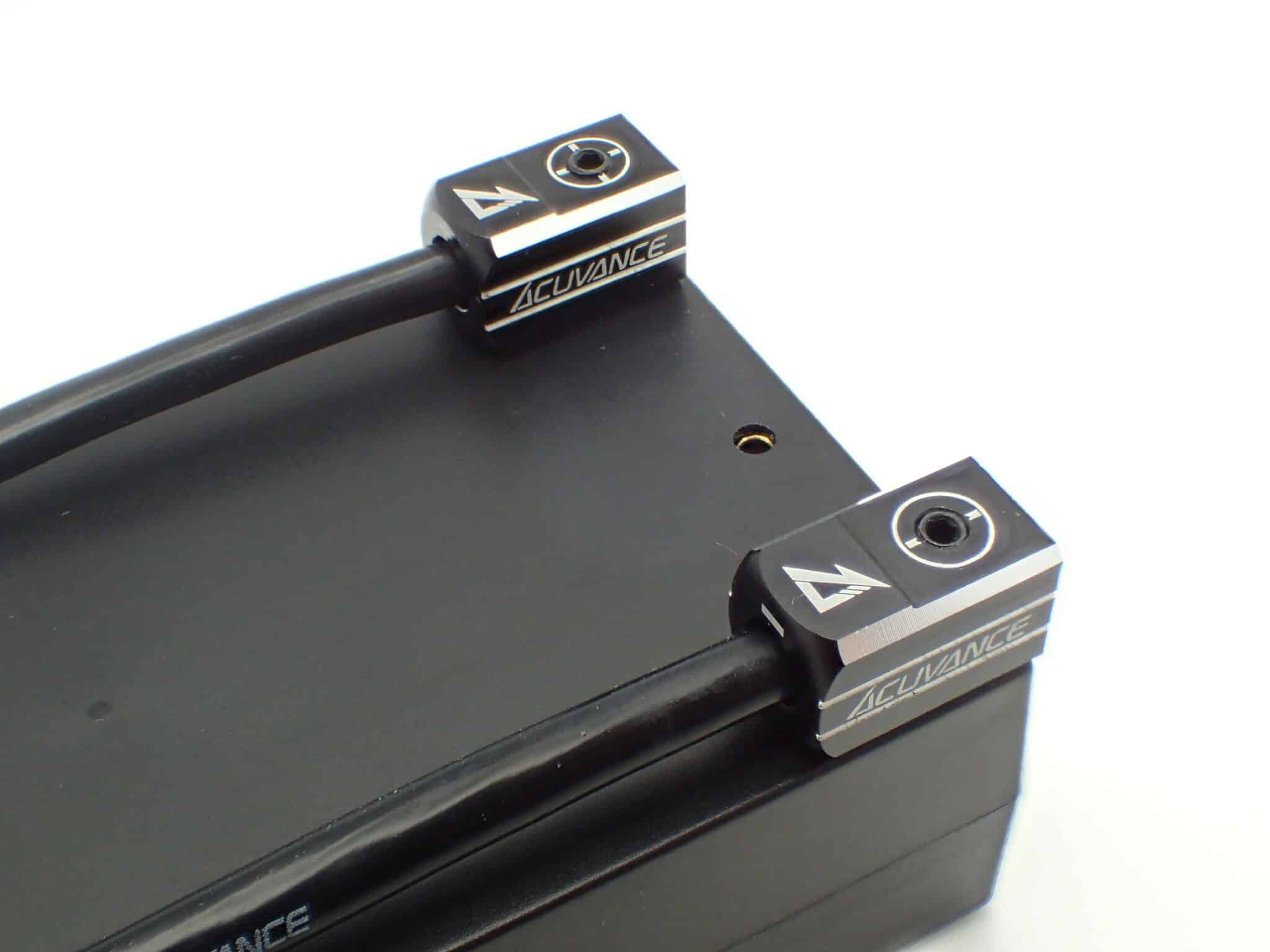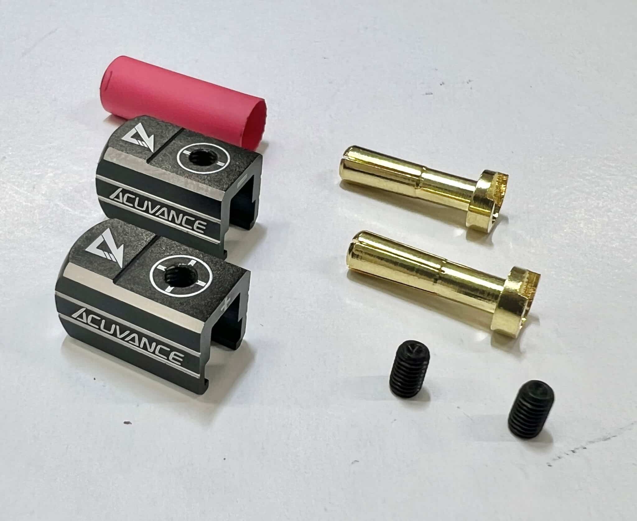 This is a set of aluminum connector grips “Radiation Grip” from ACUVANCE. These male connectors are designed to fit 4mm battery tubes.