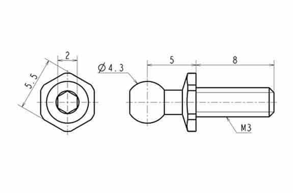 We have commercialized a rod end ball (Large size) with a Φ4.3mm specification used in the Yokomo YD-2 series etc. By using a lightweight / high rigidity titanium material and performing high-precision cutting.